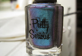 Greetings, earthlings! I have another sweet piece of nail polish eye candy from Aussie indie polish maker Pretty Serious Cosmetics for you today. A few weeks ago I showed you Phantom Planet, part of Pretty Serious' They Came From Beyond Space collection from 2012. When I first discovered Pretty Serious about a year ago, I had no experience with multichromes and in my ignorance wasn't so keen on the color shifting lacquers that make up this remarkable little collection. My how things have changed! Anyway, today's polish is from that same troika of multichromatic goodness and it's called Galaxy Invader.