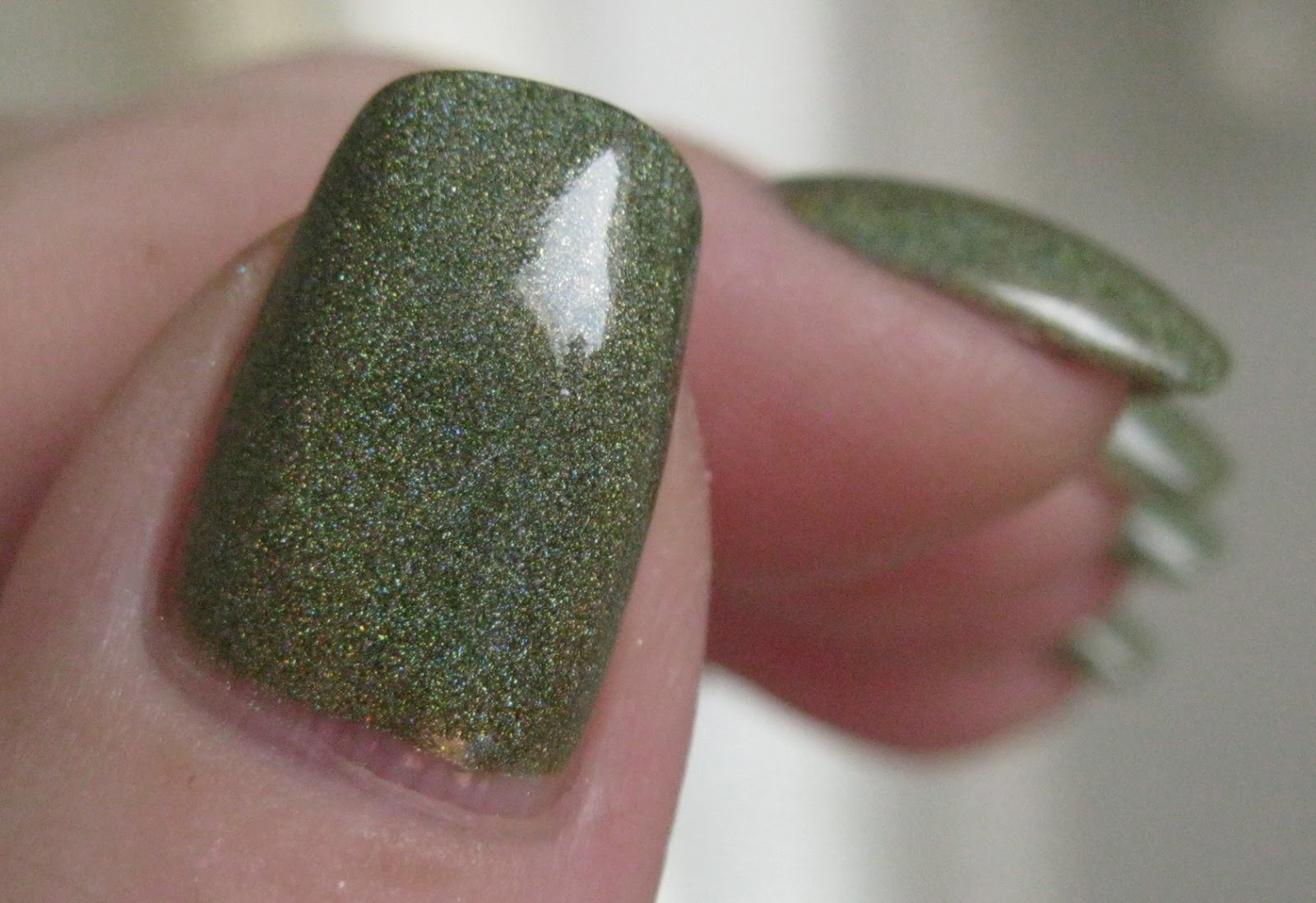 This polish seems to have the perfect balance between olive, grassy green and yellow green. And that holo, wow! What a beauty!