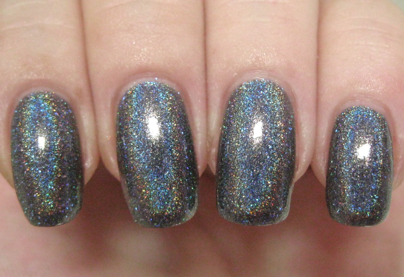 This is certainly an in-your-face kind of holo with its powerful, pervasive effects but there's also a certain gentility to be found amidst all the sparkle, which I credit to the base color. Grey has a certain dignified elegance to it and the blue nuances give its formality a little lift. It's inherently transitional, which makes it a perfect shade for fall.