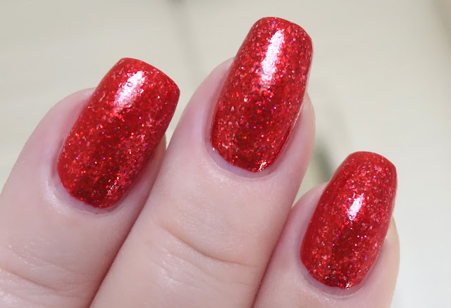 Application was great! The consistency of Sugar Coated Memories is fluid and full-bodied with a medium consistency and a very even, self-leveling flow over the nail. Pigmentation is excellent -- it goes on so evenly and opaquely that you could easily wear it at one medium coat. Two deepens the color to match the bottle. Between pigment travel and sticky silver flakes, cleanup can get messy real fast -- ask me how I know! Best to go for as clean an application as possible and allow the polish a bit of dry-time before going in with the acetone-dampened cleanup brush. Sugar Coated Memories dries naturally in very good time to a slightly flat finish with a skosh of discernible texture from the components, easily smoothed by topcoat.